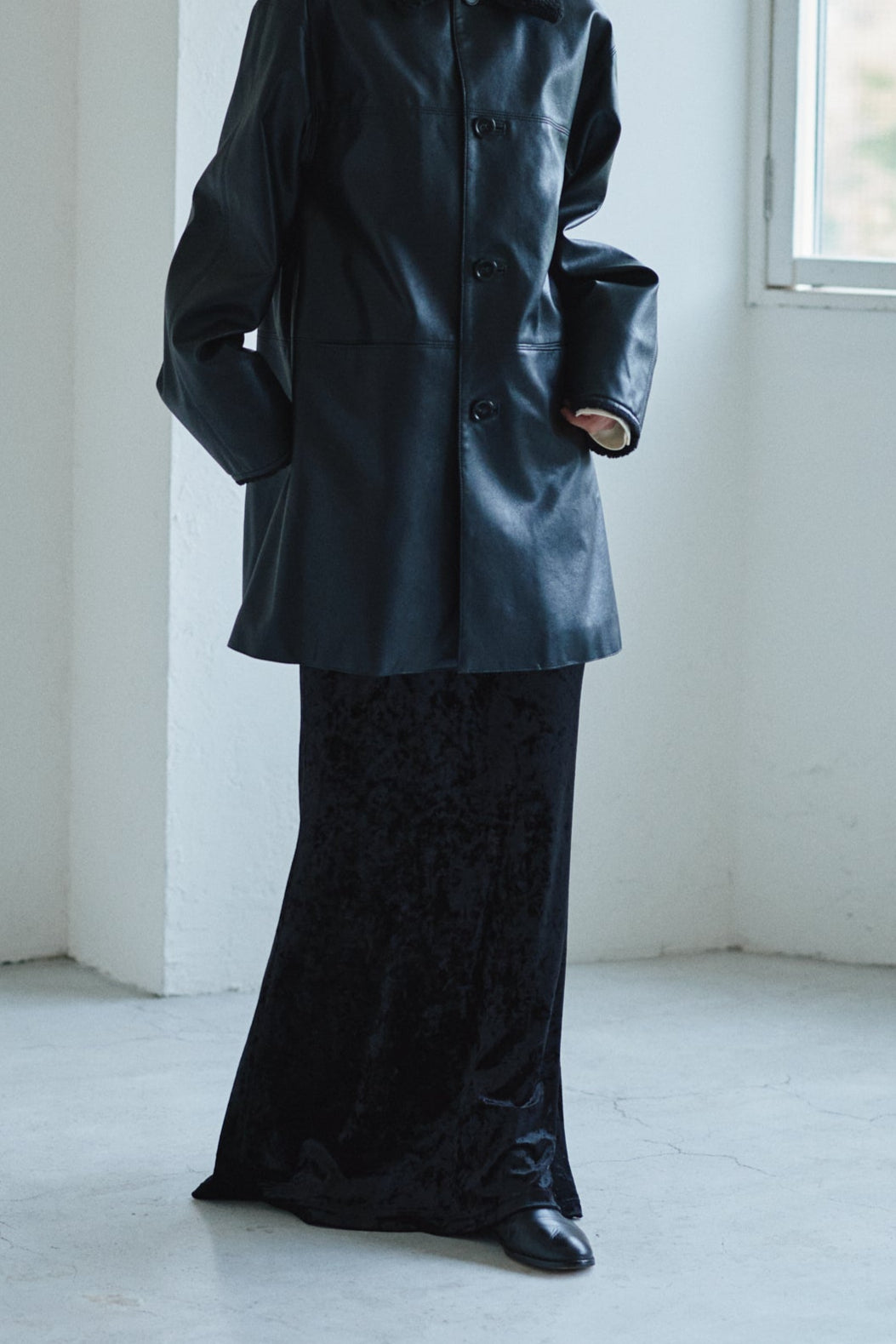 black: ギラっとした光沢感とクラッシュ感のあるベロア素材。リッチな表情で、オケージョンにもぴったり。落ち感があり、秋冬のスタイルにおすすめです。