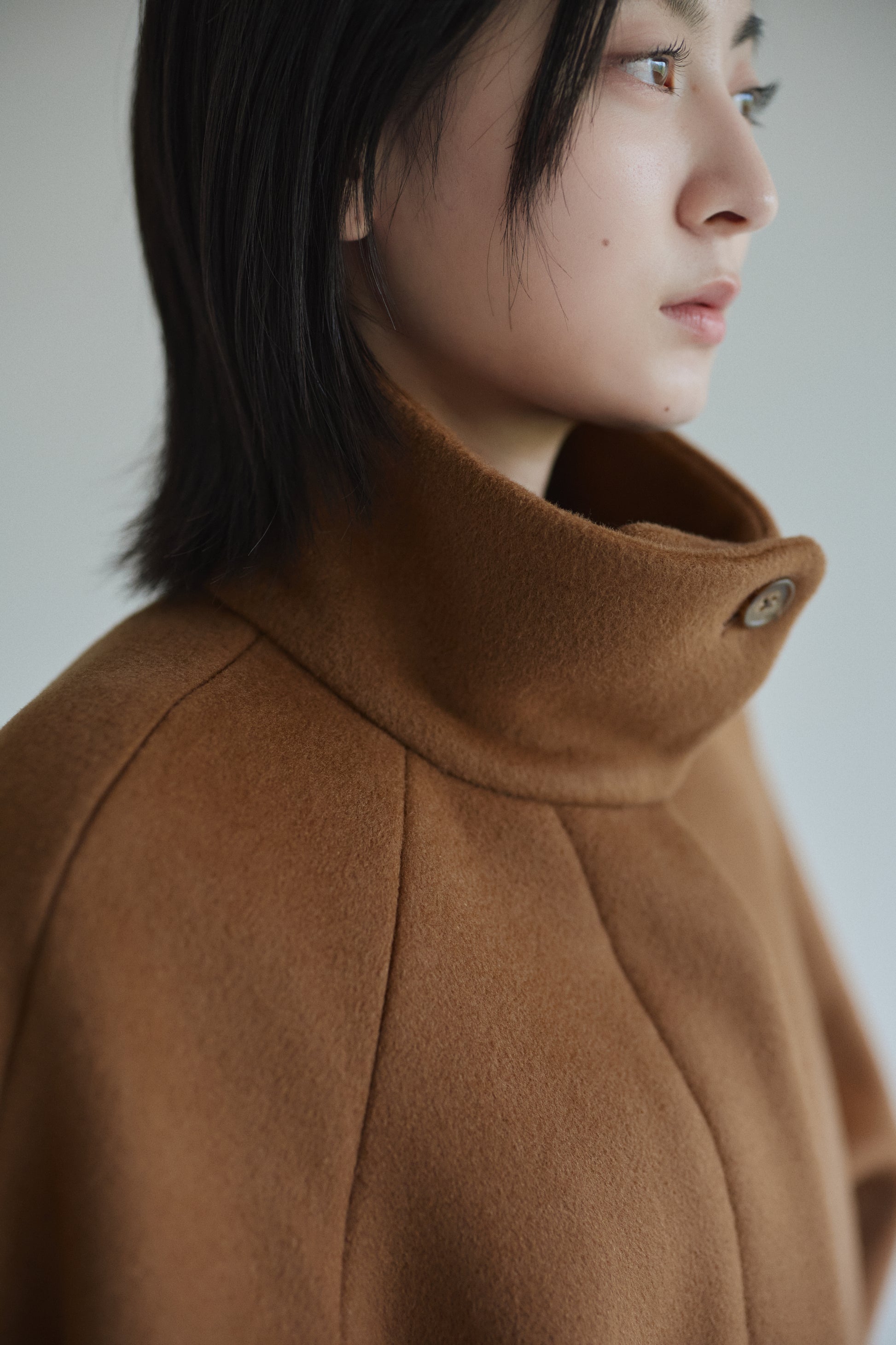 首元を優しく包み込むスタンドカラーが、気品ある佇まいを引き立てるデザイン。カジュアルさを抑えるために肩周りのステッチは最小限にとどめ、フロントは比翼仕立てで洗練された印象を与えます。